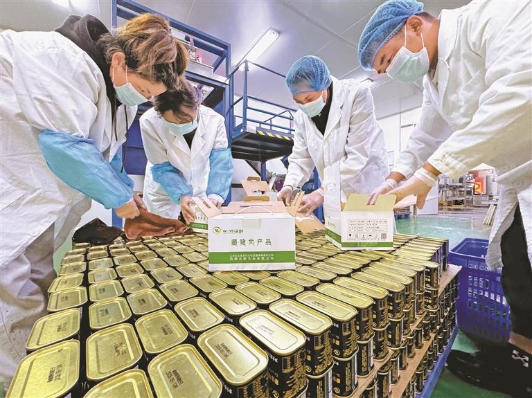 圖為林芝市工布江達(dá)縣藏香豬產(chǎn)業(yè)園內(nèi),員工在對(duì)加工好的藏香豬肉罐頭進(jìn)行分類(lèi)打包。記者 白瑪澤旺 次仁平措 攝