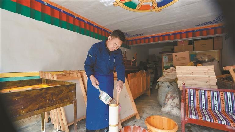 創(chuàng)辦合作社后,他在保留藏紙耐腐蝕、抗蟲蛀優(yōu)勢的同時,開發(fā)出燈籠、筆記本、相框等貼合現(xiàn)代生活的文創(chuàng)產(chǎn)品,讓這門技藝從“家族傳承”走向“群眾共享”。合作社成立至今,已先后吸納10余名當(dāng)?shù)厝罕妼W(xué)習(xí)藏紙制作,從煮料、搗漿、晾曬到塑形,阿旺曲央都毫無保留地傳授技藝,讓不少曾靠零散務(wù)工為生的村民,擁有了穩(wěn)定的“手藝收入”。村民查果便是其中一位受益者,“以前打零工收入不穩(wěn)定,現(xiàn)在跟著阿旺曲央老師學(xué)做藏紙,每月能掙2000余元,在家門口就能上班?!?/p>