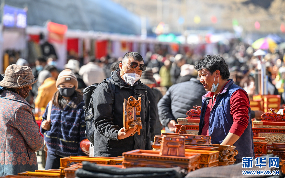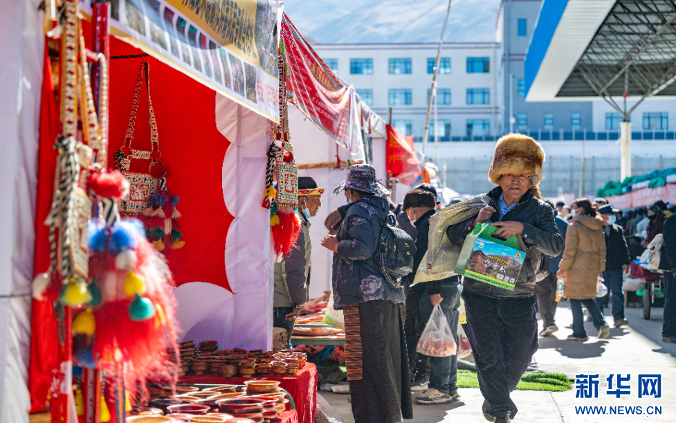 12月1日,市民在西藏自治區(qū)山南市第45屆雅礱物資交流會現(xiàn)場挑選商品。新華網(wǎng) 旦增努布 攝