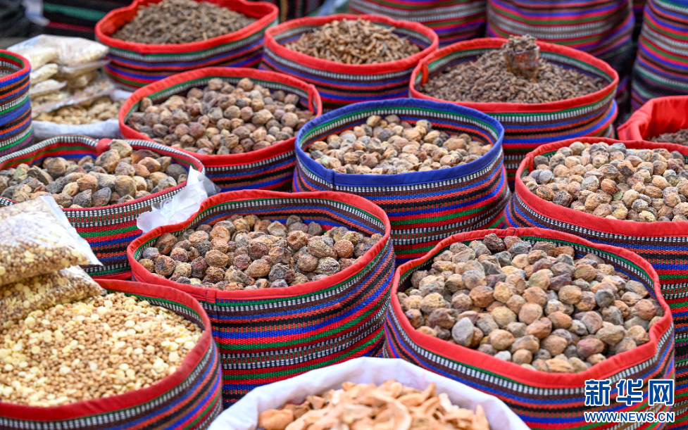 12月1日拍攝的西藏自治區(qū)山南市第45屆雅礱物資交流會上當(dāng)?shù)爻霎a(chǎn)的干果。新華網(wǎng) 旦增努布 攝