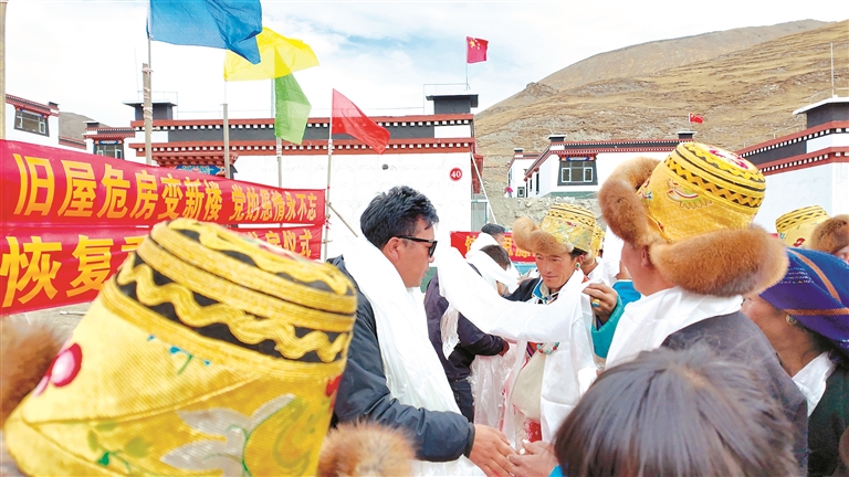 “哈達獻給最親的人,謝謝你們!真沒想到,這輩子能住上這么好的房子。這是黨的恩情,也是你們的功勞!”2025年10月底,日喀則市薩迦縣拉洛鄉(xiāng)塔村的災后重建房屋全部竣工,村民歡天喜地搬進新居。入住當天,曾經(jīng)反對搬遷的次旦手捧哈達獻給包村干部和施工隊隊員,并充滿感激地說。