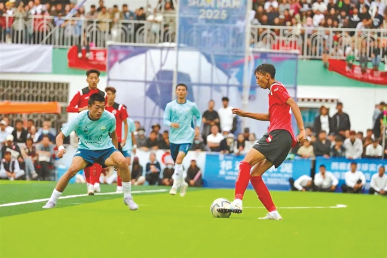 圖為乃東區(qū)舉辦的“石榴籽杯”草原足球邀請賽。