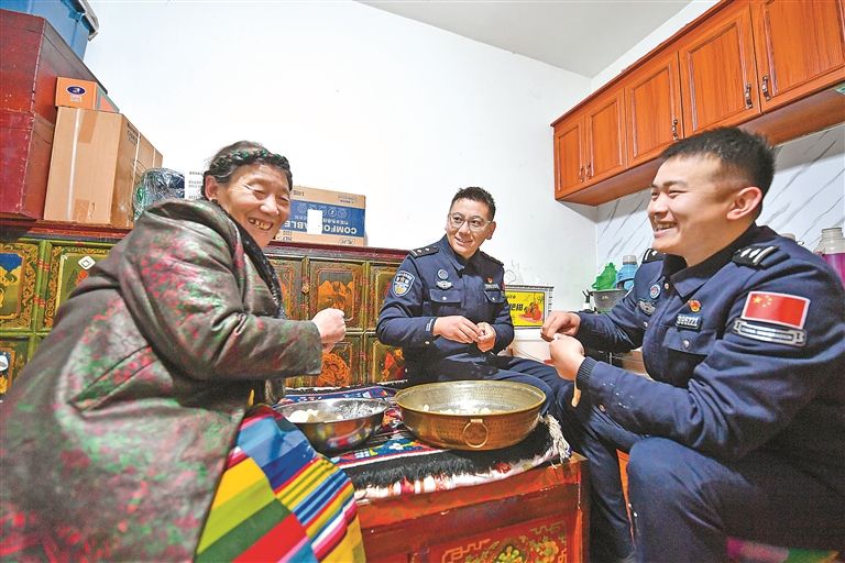 下司馬鎮(zhèn)邊境派出所所長益西平措望著滿屋歡聲笑語的場景,感慨道:“雖然每年過年都回不了家,但轄區(qū)群眾把我們當自家人,不愁吃不上熱乎的年夜飯。”