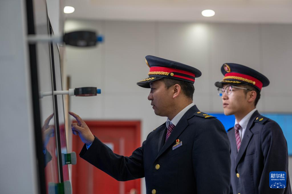 2月14日,斯朗旺扎與調(diào)車長聯(lián)控。新華社記者 旦增尼瑪曲珠 攝