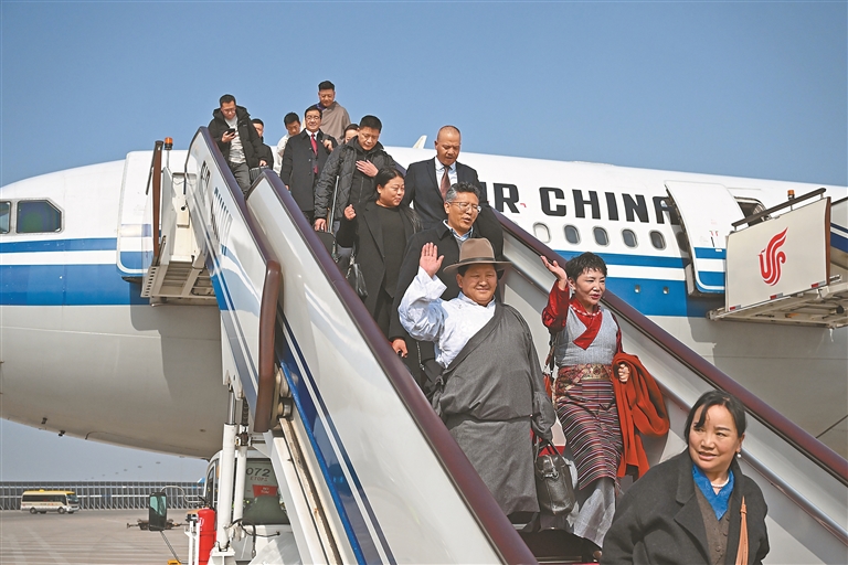 帶著全區(qū)各族群眾的期待和重托,3月3日下午,出席全國兩會的西藏代表委員乘機抵達首都北京,共赴春天的盛會。