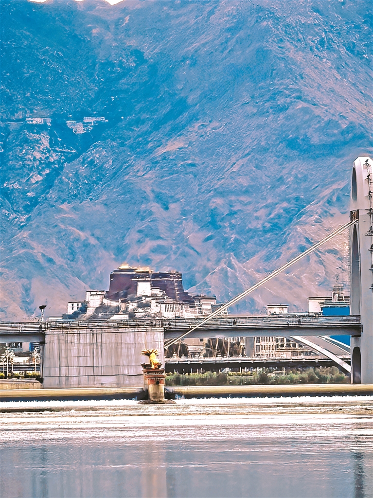 圖為拉薩河特大橋旁遙望布達拉宮。