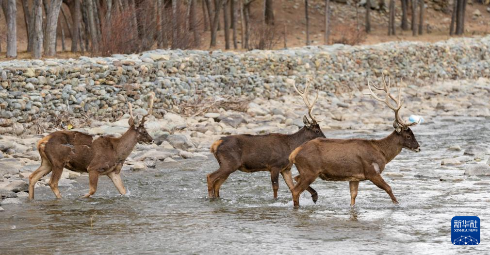 這是3月15日在西藏山南市乃東區(qū)結(jié)巴村拍攝的白唇鹿。新華社記者 晉美多吉 攝