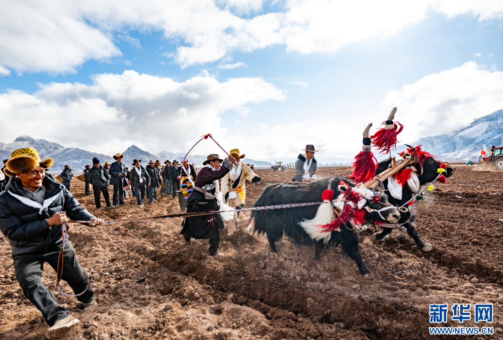 3月16日,西藏拉薩市林周縣春堆鄉(xiāng)春堆村的春耕儀式現(xiàn)場(chǎng)。新華網(wǎng) 旦增努布 攝