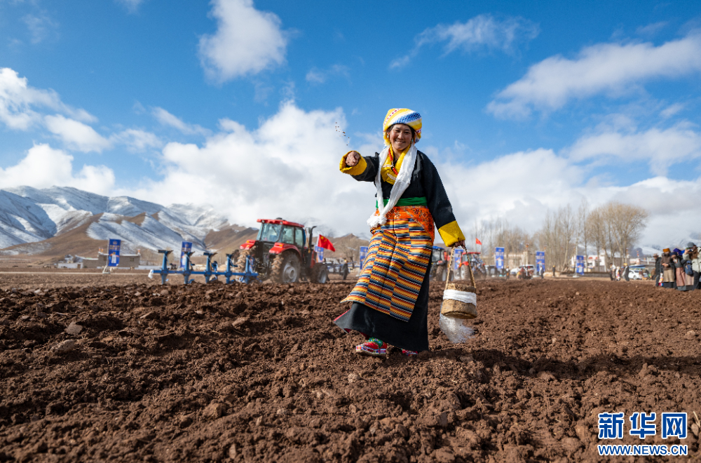 當(dāng)日,西藏自治區(qū)拉薩市林周縣春堆鄉(xiāng)春堆村群眾身著盛裝,按照傳統(tǒng)儀式,手捧青稞酒,在拉薩河谷舉行春耕儀式,播撒今春第一粒種子,祈福豐收。過(guò)去,“二牛抬杠”是當(dāng)?shù)貍鹘y(tǒng)的農(nóng)耕方式。如今,春堆村的農(nóng)機(jī)化率已達(dá)到100%。