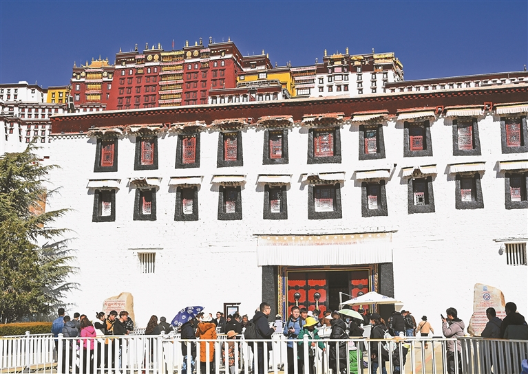 圖為第八輪“冬游西藏”期間,游客有序進入布達拉宮參觀(資料圖片)。記者 洛桑 攝