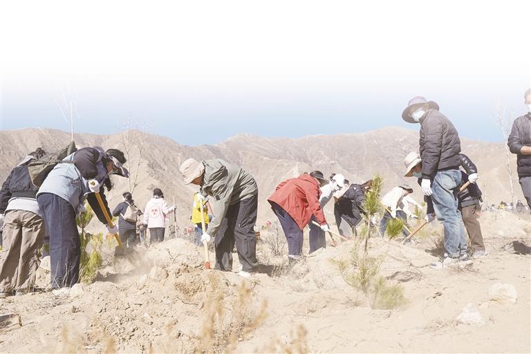 3月,正值高原春季造林黃金窗口期,曲水縣南木鄉(xiāng)江村的植樹現(xiàn)場熱火朝天,全區(qū)區(qū)直、市直各單位黨員干部代表齊聚于此,開展春季義務(wù)植樹主題黨日活動,以黨建紅引領(lǐng)生態(tài)綠,以實干擔(dān)當(dāng)厚植高原綠色根基,高標(biāo)準(zhǔn)推進南北山綠化春季造林攻堅,全力守護雪域高原生態(tài)安全。