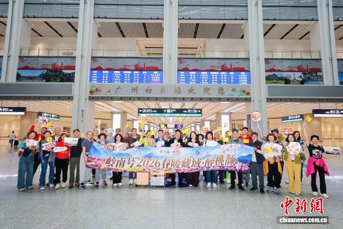 “2026西藏林芝桃花包列”主題系列團(tuán)21日從廣州出發(fā),近200名游客坐上火車,奔赴雪域高原,邂逅雪山與桃花交織的春日盛景。