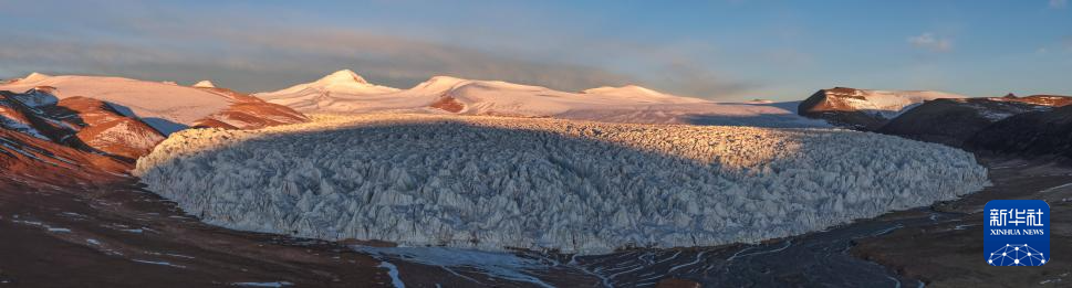 清晨的藏色崗日冰川(無人機(jī)拼接照片,3月10日攝)。新華社發(fā)(四郎江村攝)