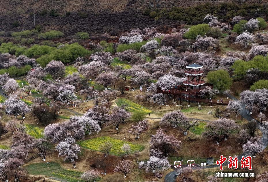 3月27日,西藏林芝市巴宜區(qū)嘎拉村桃花美景。時下,西藏林芝市的千余株野生桃樹次第綻放,美不勝收。中新社記者 李林 攝(無人機照片)
