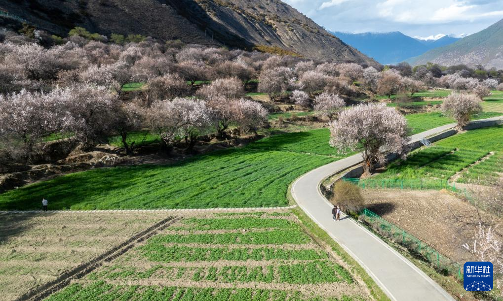 這是4月2日在林芝巴宜區(qū)朵當(dāng)村拍攝的桃林(無人機(jī)照片)。新華社記者 丁增尼達(dá) 攝