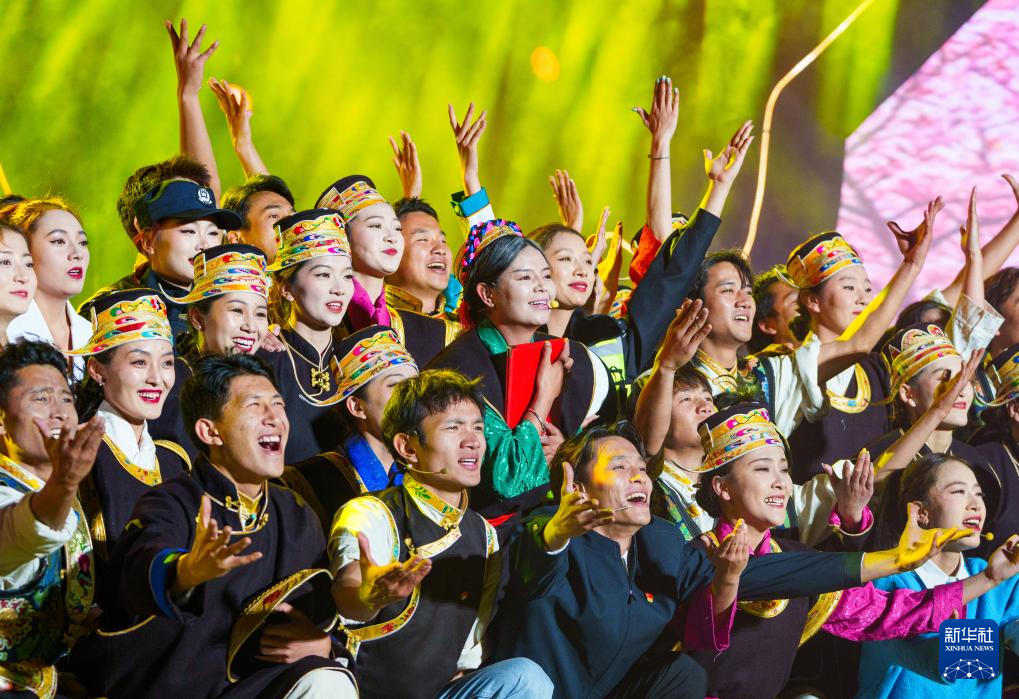 這是4月3日拍攝的林芝第二十三屆桃花旅游文化節(jié)開幕式文藝演出現(xiàn)場。新華社記者 丁增尼達(dá) 攝