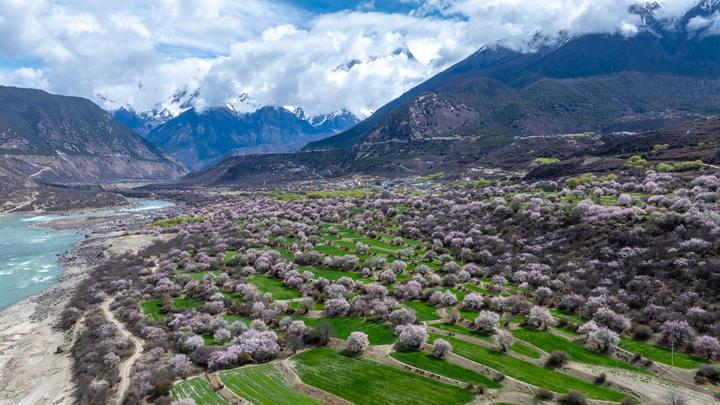 百里桃林沐雪盛放,粉霞漫卷河谷山川,遠(yuǎn)瞰猶如精心雕琢卻又恣意鋪展的粉彩畫卷。在喜馬拉雅山脈的褶皺里,這股“溫柔”而向上的“野性”,昭示著西藏最早的春天已經(jīng)到來。