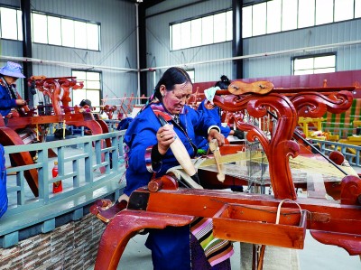 在山南市乃東區(qū)的民族嘩嘰手工編織專業(yè)合作社,一名手工藝人正在工作?!皣W嘰”是藏族手工生產(chǎn)的氆氌(羊毛織品)中最高級的產(chǎn)品。目前,民族嘩嘰手工編織專業(yè)合作社主要生產(chǎn)傳統(tǒng)藏裝、披肩、圍巾等產(chǎn)品,年產(chǎn)值達到900萬元。郭紅松攝
