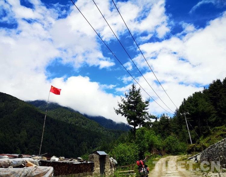 圖為現(xiàn)在的西藏自治區(qū)日喀則市亞?wèn)|縣縣域內(nèi)隨處可見鮮艷的五星紅旗