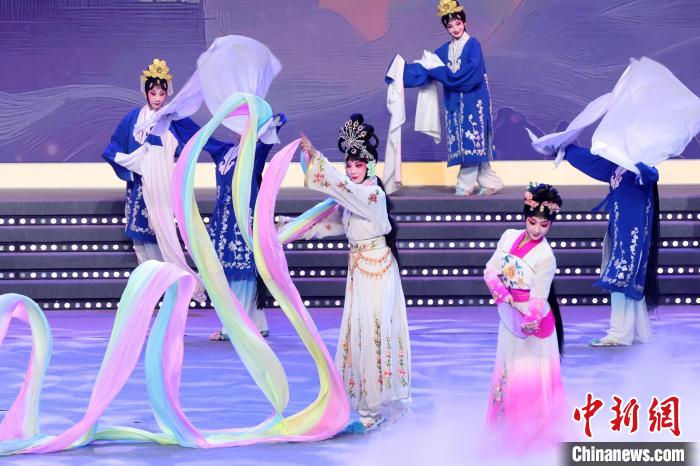 9月10日晚,2024江蘇中秋戲曲晚會(huì)在江蘇廣電荔枝大劇院上演,晚會(huì)緊扣“中秋”和“戲曲”兩大元素,將傳統(tǒng)節(jié)日內(nèi)涵與戲曲藝術(shù)融為一體,戲曲界各劇種名家陳少云、趙志剛、竺小招、周東亮、李奕潔、陳澄、李曉旭、施夏明等“梅花獎(jiǎng)”“紫金文化獎(jiǎng)?wù)隆薄拔娜A表演獎(jiǎng)”獲得者輪番登臺(tái),與近年來涌現(xiàn)出的優(yōu)秀青年演員同臺(tái)演出,凸顯戲曲文化的傳承與創(chuàng)新,為觀眾帶來一個(gè)流光溢彩的戲曲之夜。圖為戲曲演員們在舞臺(tái)上表演節(jié)目。中新社記者 泱波 攝