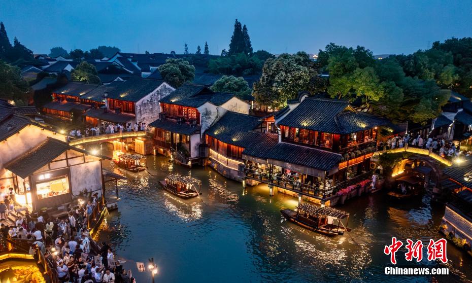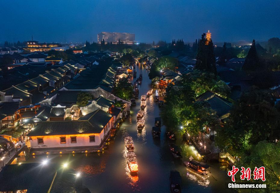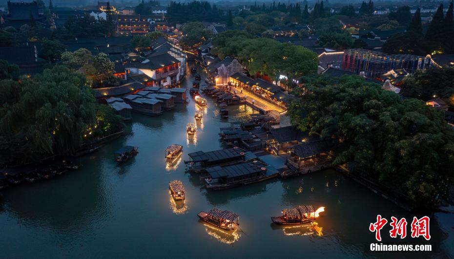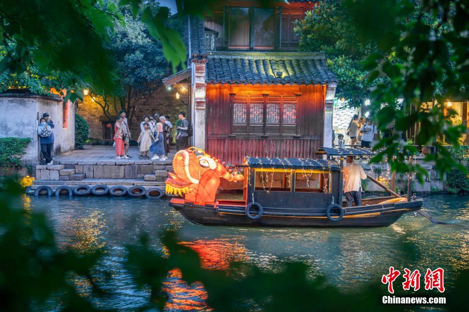 近日,在浙江嘉興,烏鎮(zhèn)景區(qū)推出“龍舟花燈船”新體驗(yàn),將傳統(tǒng)搖櫓船與龍舟相結(jié)合,推出“龍舟花燈船”水上巡游活動(dòng)。