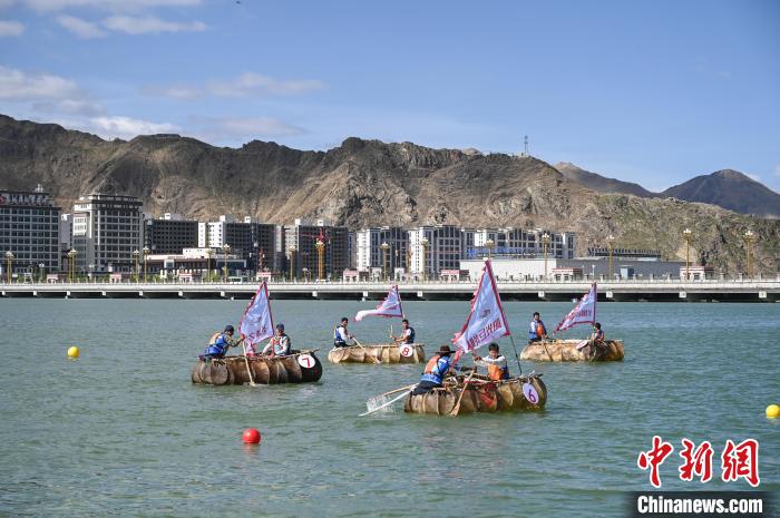 6月9日,2024年西藏自治區(qū)端午節(jié)牛皮船(龍舟)賽在拉薩市濱河公園水域舉辦。據(jù)悉,本次賽事系西藏首次舉辦、也是中國國內(nèi)海拔最高的牛皮船(龍舟)賽 。比賽邀請了來自遼寧、湖北、湖南、四川、云南、貴州和廣西壯族自治區(qū)的30名龍舟運動員,與西藏區(qū)內(nèi)的30名龍舟運動員以及40名牛皮船運動員進(jìn)行同場競技。圖為牛皮船比賽現(xiàn)場。貢嘎來松 攝