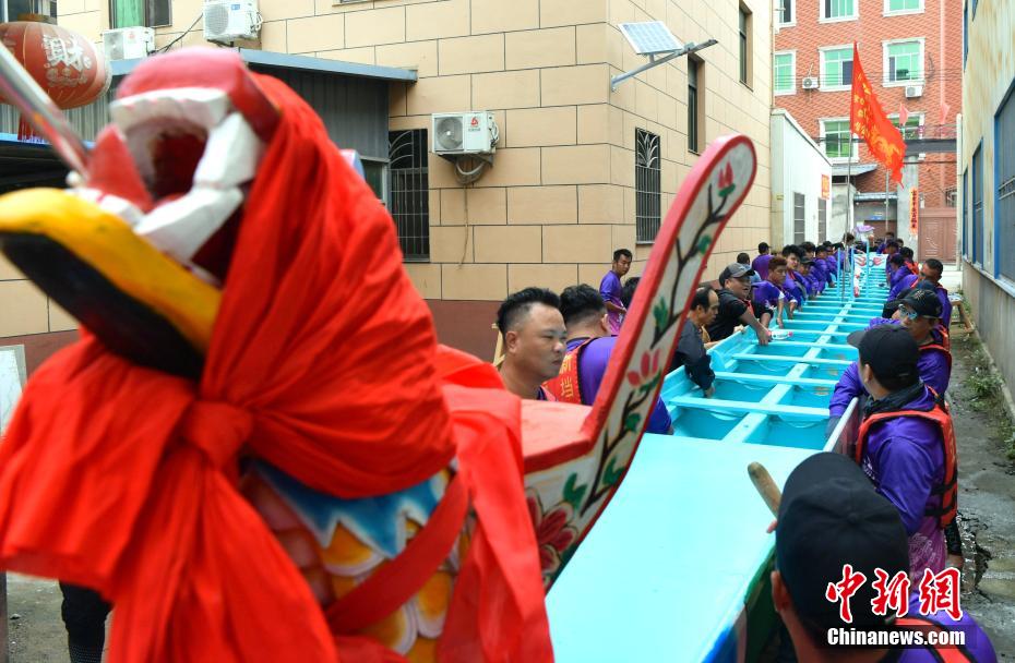 “世界龍舟看中國,中國龍舟看福州,福州龍舟看方莊?!蔽挥诟=ㄊ「V菔虚}侯縣的方莊村,是中國最大的龍舟制造村,有著七百多年制作龍舟的歷史。隨著端午節(jié)臨近,方莊村內(nèi)的龍舟制造廠里,工匠們正加班加點(diǎn)趕制端午節(jié)的龍舟訂單。據(jù)統(tǒng)計(jì),目前該村每年能接到超過200艘龍舟的訂單,總產(chǎn)值約600萬元人民幣。圖為5月25日,福州倉山螺洲鎮(zhèn)的村民在方莊村迎接訂制的龍舟回村。中新社記者 張斌 攝