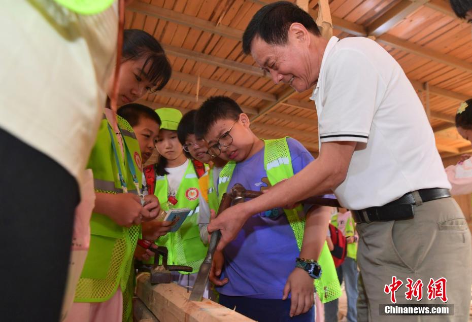 “世界龍舟看中國,中國龍舟看福州,福州龍舟看方莊?!蔽挥诟=ㄊ「V菔虚}侯縣的方莊村,是中國最大的龍舟制造村,有著七百多年制作龍舟的歷史。隨著端午節(jié)臨近,方莊村內(nèi)的龍舟制造廠里,工匠們正加班加點(diǎn)趕制端午節(jié)的龍舟訂單。據(jù)統(tǒng)計(jì),目前該村每年能接到超過200艘龍舟的訂單,總產(chǎn)值約600萬元人民幣。圖為5月25日,在方莊村的“龍舟世家”方忠雄龍舟廠里,前來參觀的小學(xué)生在了解傳統(tǒng)龍舟的制作工藝和過程。中新社記者 張斌 攝