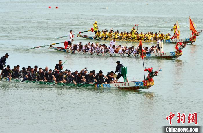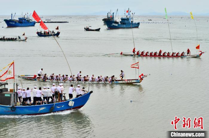5月27日,福建省連江縣定海村舉行海上龍舟賽活動(dòng),迎接即將到來(lái)的端午節(jié)。中新社記者 張斌 攝