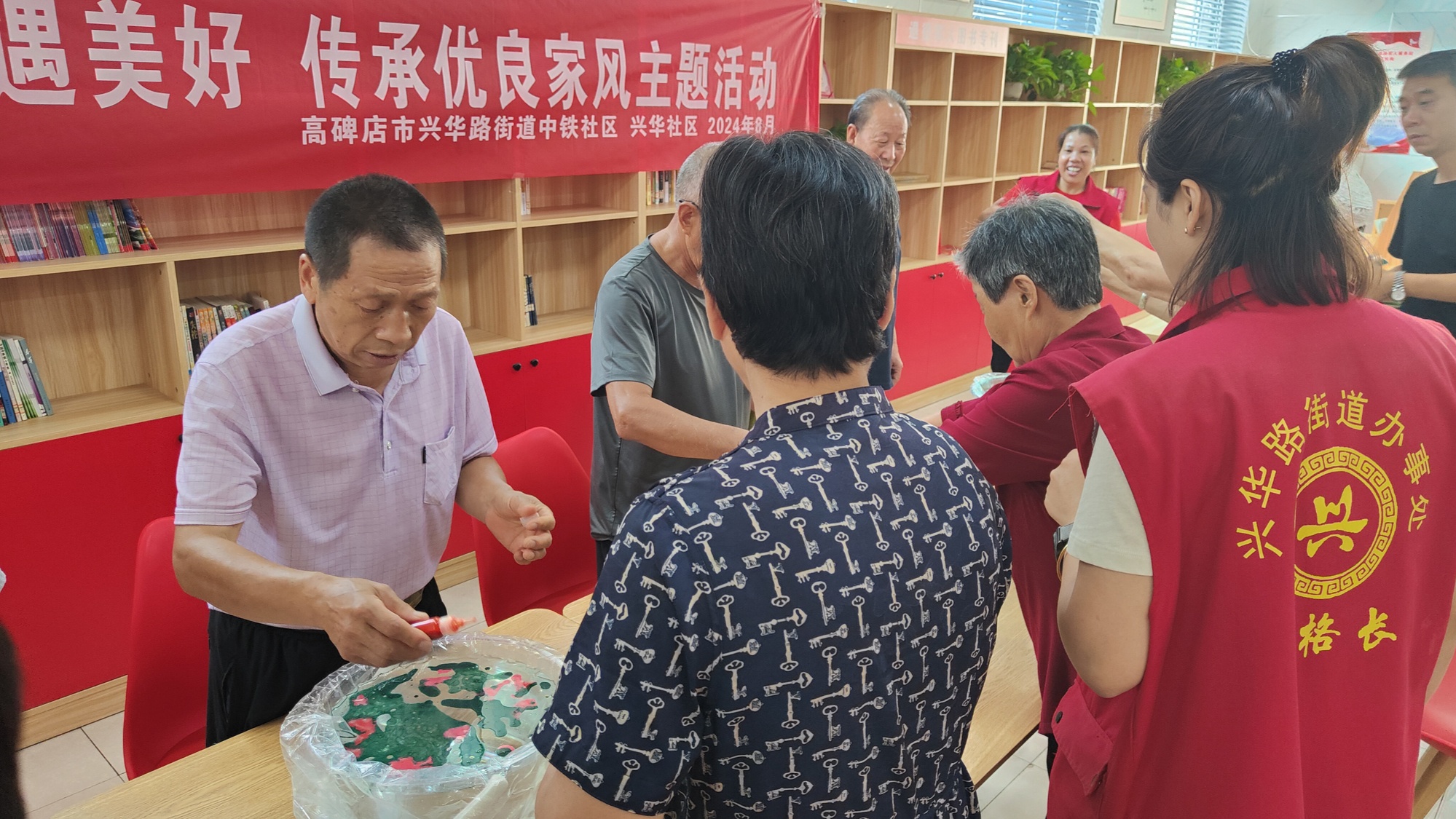 在中鐵社區(qū)群眾活動中心,工作人員為居民介紹了漆包和古法造紙術(shù)的技藝特點(diǎn),并指導(dǎo)大家親手體驗(yàn)制作。