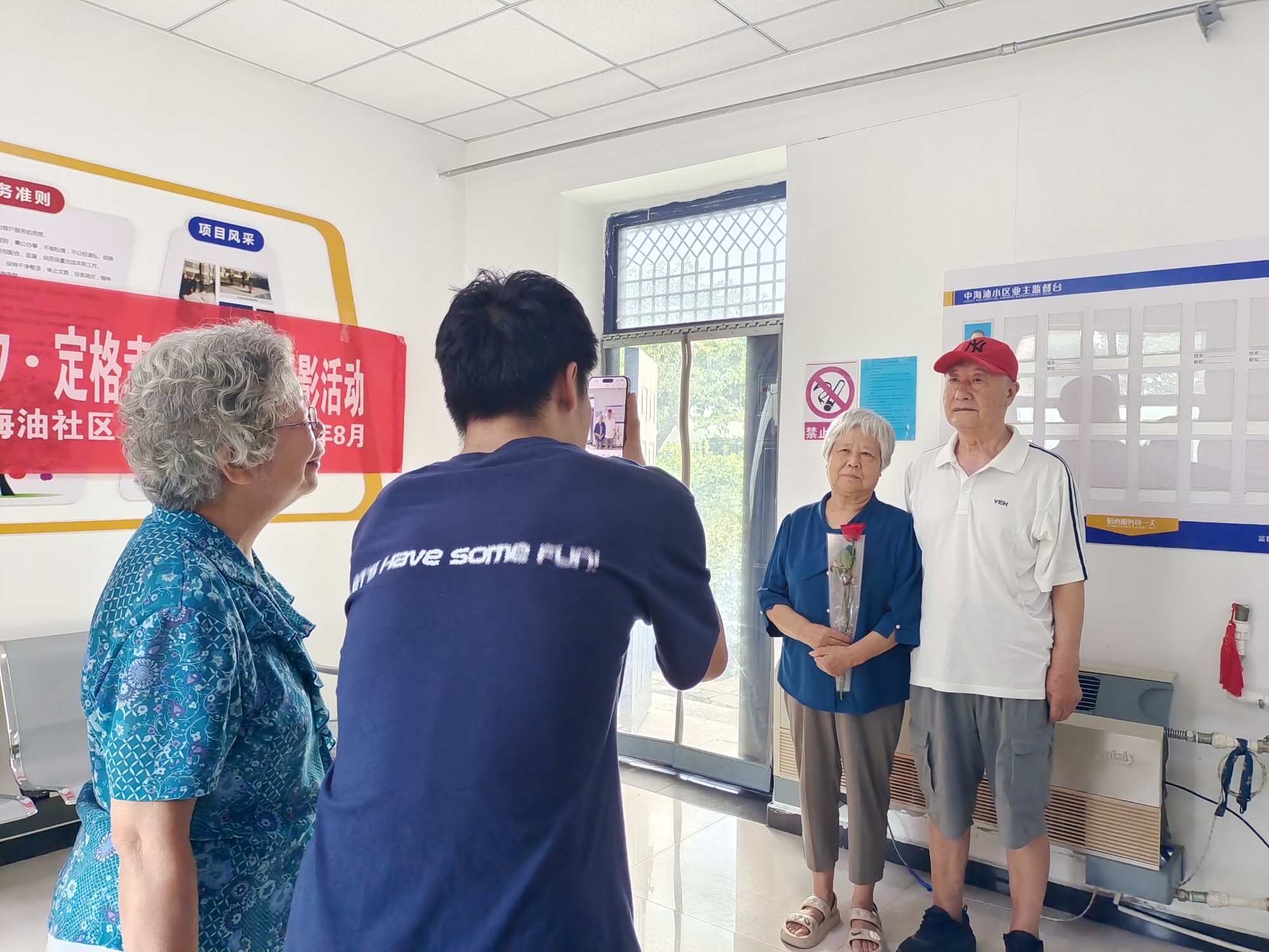在幸福路社區(qū),志愿者們還為轄區(qū)60歲以上老人開展免費(fèi)拍照活動,用光影定格老人們半個世紀(jì)的相濡以沫。