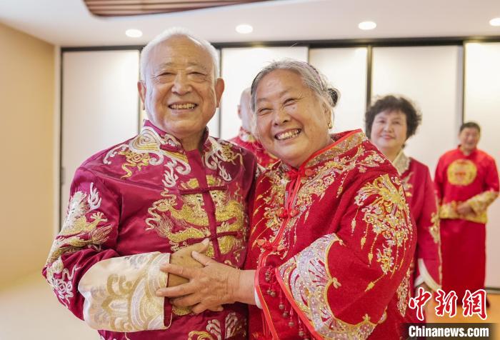 七夕將至,河北省邯鄲市老人走進(jìn)叢臺(tái)區(qū)光明橋街道天璽苑社區(qū),參加“七夕迎金婚 共創(chuàng)好家風(fēng)”慶典,回憶半個(gè)世紀(jì)的愛情。金婚慶典儀式經(jīng)過牽手入場(chǎng)、夫妻對(duì)拜、執(zhí)子之手、回憶往昔等環(huán)節(jié),見證了金婚夫妻們相濡以沫、互敬互愛的美滿婚姻。金婚老人結(jié)合親身經(jīng)歷,分享家風(fēng)家訓(xùn)及愛情故事,講述家庭幸福的秘訣,“曬”出婚姻保鮮的秘籍,分享婚姻的經(jīng)營智慧。圖為8月6日,攝影師為金婚夫妻拍合影。王倩倩 攝