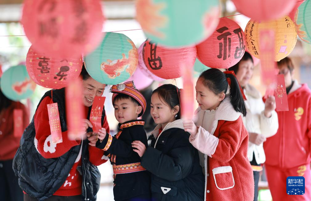 2月10日,人們?cè)趶V西桂林市靈川縣蘭田瑤族鄉(xiāng)西江寨參與猜燈謎活動(dòng)。