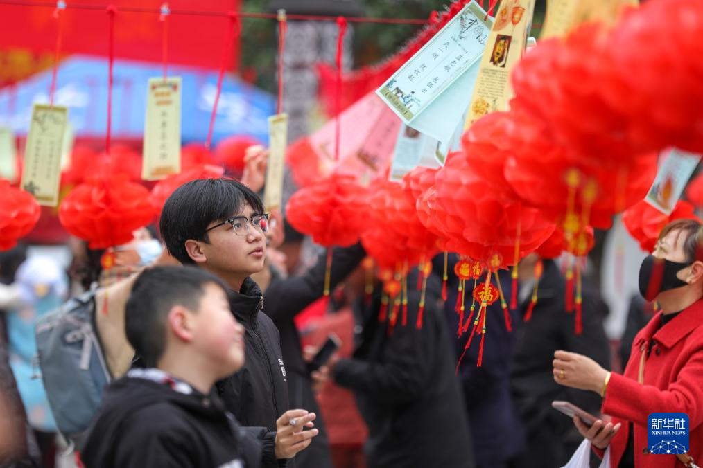2月11日,湖南省衡陽(yáng)市衡陽(yáng)縣在明翰廣場(chǎng)開展猜燈謎活動(dòng),吸引眾多市民參與。