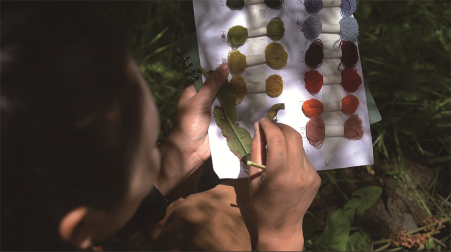 次仁曲珍用野外采集的花草擴(kuò)充天然染色板。