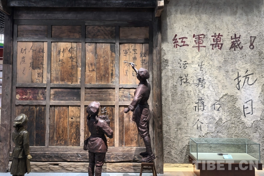 圖為迪慶紅軍長征博物館外,賀龍等人贈送“興盛番族”綢匾的情景還原 攝影:邊子捷