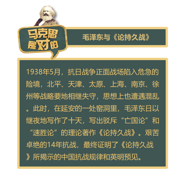 毛澤東同志說過一句話,他說:“馬克思主義有幾門學問,但基礎的東西是馬克思主義哲學。這個東西如果沒有學通,我們就沒有共同的語言,沒有共同的方法,扯了許多皮,扯還扯不清楚。有了辯證唯物論的思想,就省了許多事,也少犯許多錯誤。”《論持久戰(zhàn)》就是一個十分典型的例子。這部著作分析了中日雙方相互矛盾著的四個基本特點,它就是敵強我弱、敵小我大、敵退步我進步、敵寡助我多助。根據(jù)這些特點的分析,就作出了中國不會滅亡,也不能速勝。只要經(jīng)過艱苦、持久的抗戰(zhàn),最后的勝利一定屬于中國的這樣一個正確的結論,這就為中國人民的抗日戰(zhàn)爭指明了勝利的方向。