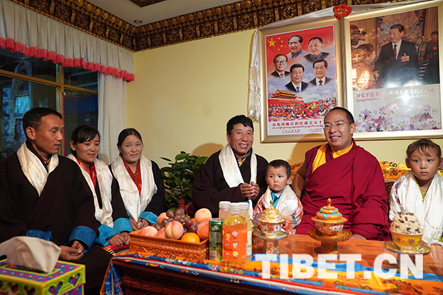 打掃庭院、布置藏式客廳、擺放各種水果和飲品……為了恭迎十一世班禪的到來,達(dá)瓦一家一大早便忙碌起來。他說,“班禪仁波切來到我家,對于我們家來說是歷史性的時(shí)刻,是我們?nèi)胰诵迊淼母7??!?/p>