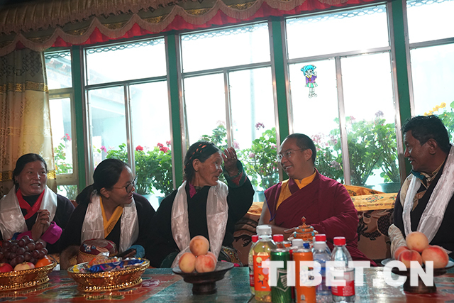 圖為十一世班禪在達(dá)瓦家,了解他們的生產(chǎn)生活情況。攝影:王淑