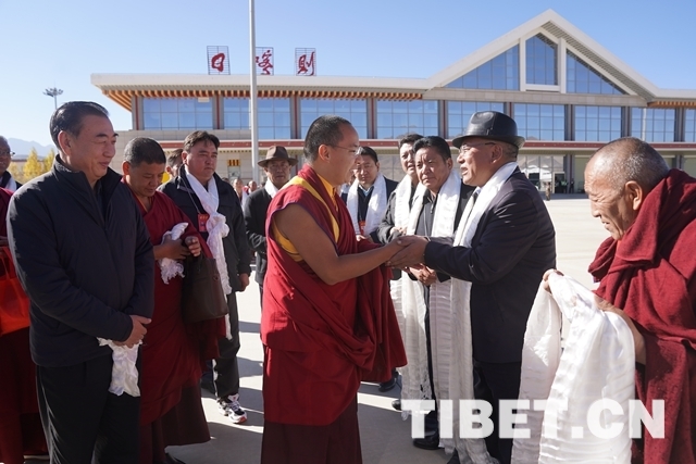 中國西藏網(wǎng)訊 全國政協(xié)常委、中國佛教協(xié)會副會長班禪額爾德尼o確吉杰布圓滿完成在西藏自治區(qū)的各項考察調(diào)研和佛事活動后,10月16日上午乘機(jī)離開日喀則。