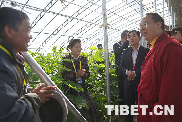 圖為十一世班禪在白朗縣考察蔬菜種植基地。攝影:王淑