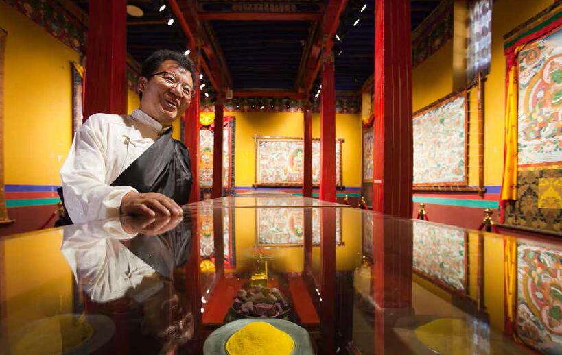古老的夏扎大院內有專門的唐卡和唐卡顏料制作展示,扎西桑珠談起唐卡顏料的制作時如數(shù)家珍。