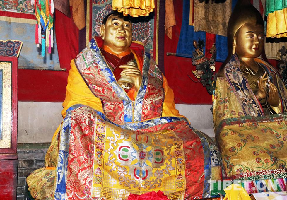塔爾寺大經(jīng)堂內(nèi)十世班禪大師(左)等身像。
