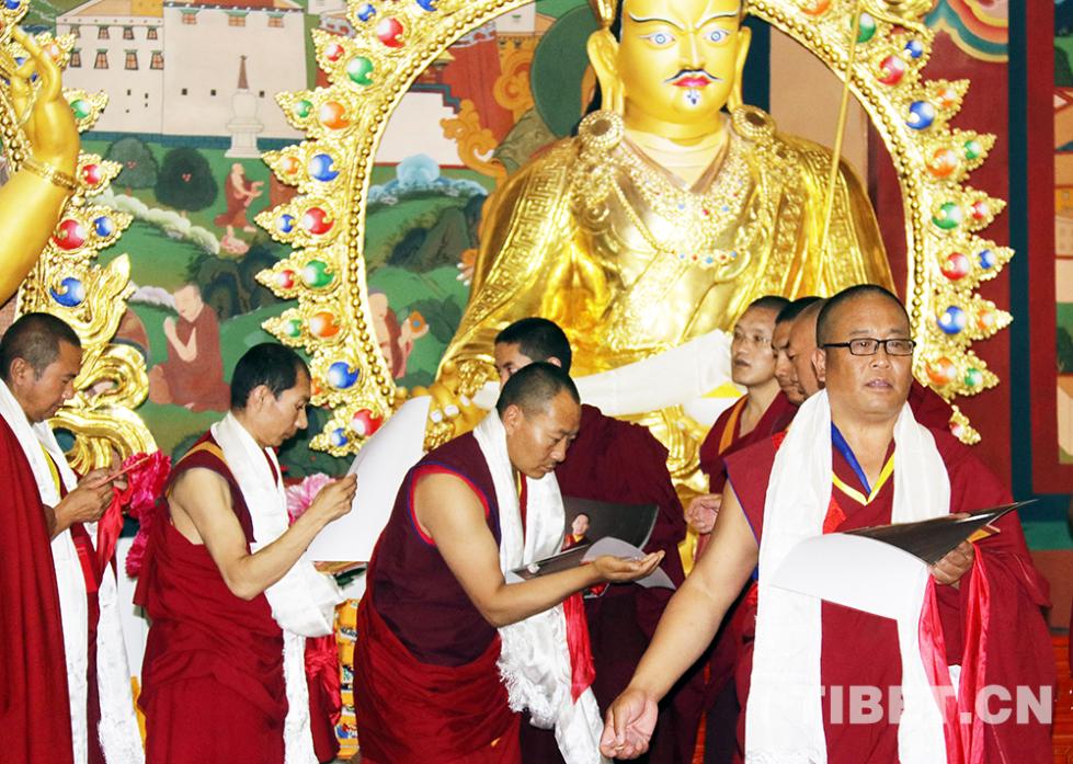 塔爾寺僧人向班禪大師敬獻曼扎。