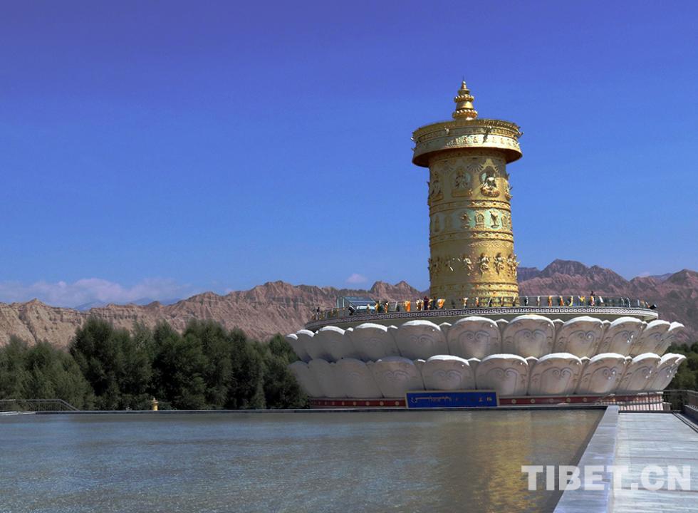 最后,班禪大師一行來到位于黃河岸邊的“中華福運輪”,“中華福運輪”轉(zhuǎn)經(jīng)輪主體高42米,于2012年獲頒吉尼斯世界紀錄?!爸腥A福運輪”坐北向南,由黃河民俗博物館、倒影池、轉(zhuǎn)經(jīng)塔三部分組成。班禪大師一行,背對著翻騰著青色波濤的黃河坐下,面對著“中華福運輪”,班禪帶領(lǐng)僧眾念誦祈愿經(jīng)文,祈禱世界和平、國泰民安、五谷豐登、眾生幸福。(中國西藏網(wǎng)文、圖/袁星宇)