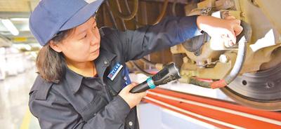 一聲長鳴,動車開進(jìn)車間。此時(shí)已是晚上10點(diǎn),而對于王曉霞來說,工作才剛剛開始。換上運(yùn)動鞋,拿上攝像機(jī)、手電筒,王曉霞帶著工作人員開始檢查作業(yè)。在能容納8列動車、面積12000平方米的檢修庫里,王曉霞時(shí)而鉆到車底查看底部設(shè)備情況,時(shí)而爬梯進(jìn)去檢查列車超速防護(hù)系統(tǒng)速度傳感器是否正常。“一晚上走5公里,穿運(yùn)動鞋有時(shí)候腳都會磨破?!?/p>