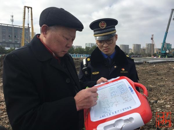 張海清用畫畫板向丁橋二號港執(zhí)法長吳東超溝通問題。
