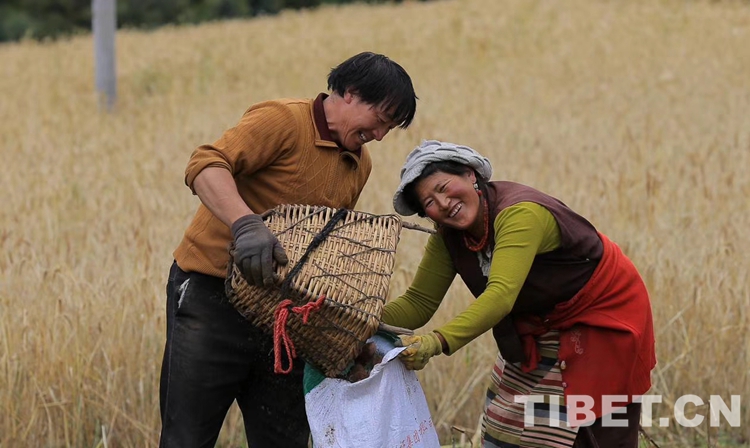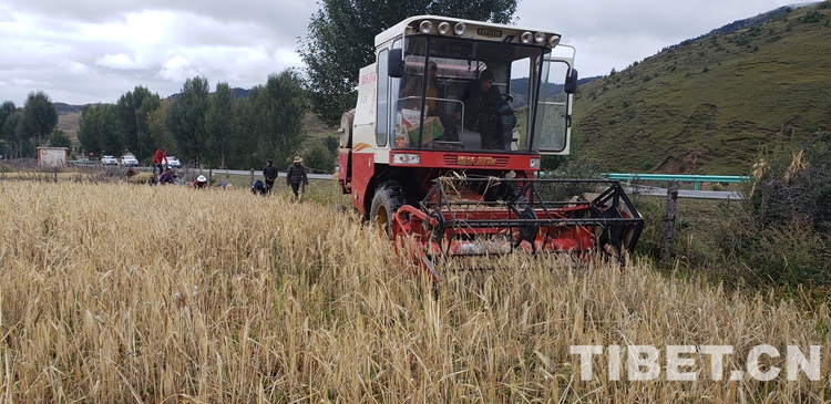 洛絨登巴家有10畝承包地,秋收成了大問題。過去秋收,家家都是人工手割,一人累了一天也割不了1畝地,耽誤農(nóng)時(shí)不說,還影響收成。像青稞麥類農(nóng)作物,太陽一曬,青稞崩落地了。像他家這么多的土地,用人工根本收不過來。甲洼鎮(zhèn)政府現(xiàn)擁有2臺聯(lián)合收割機(jī),收割、脫粒、裝袋三道工序一次完成!過去得10多人收一周時(shí)間的地,現(xiàn)在兩小時(shí)便搞定了,而且做到了顆粒歸倉、秸稈還田!秋收時(shí)節(jié),整片地里,聯(lián)合收割機(jī)像技藝精湛的畫家,隨心所欲、胸有成竹、瀟灑自如地在壟間地頭揮毫!片片莊稼倒下后,袋袋糧食裝上拖拉機(jī)……那場面,甚是宏大而喜人!連洛絨登巴的岳母大人目睹秋收場景后,也不由感慨地說:“這一眨眼的工夫,糧食已從田間送進(jìn)倉了,簡直像變戲法一樣!”
