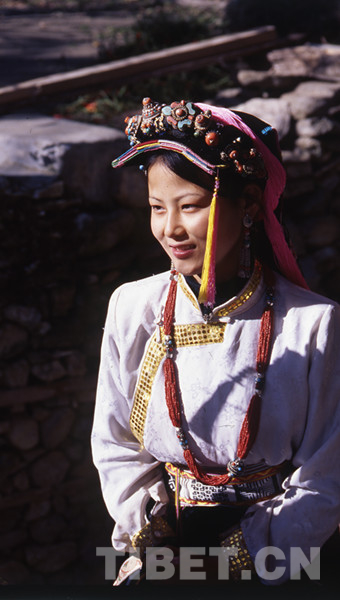 曾經(jīng)在雜志上看過一篇關(guān)于丹巴美人谷的報(bào)道,上面有一張三、四十人的丹巴女子盛裝大合影,眼睛逐一地在她們臉上掃過——簡直有些傻了:個個烏發(fā)白膚高鼻小口,身材高挑勻稱柔軟,如出水芙蓉般清麗俊秀…… 這等美麗不是百里挑一、也是五十里挑一的,合影中幾乎個個女子都有這般天生麗質(zhì),反反復(fù)復(fù)看了一遍又一遍,引來心中無限憧憬、無限神往。