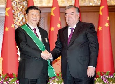 6月14日,習近平主席抵達塔吉克斯坦首都杜尚別時,塔總統(tǒng)拉赫蒙也親自前往機場迎接。期間,習近平被授予塔吉克斯坦國家最高勛章“王冠勛章”。